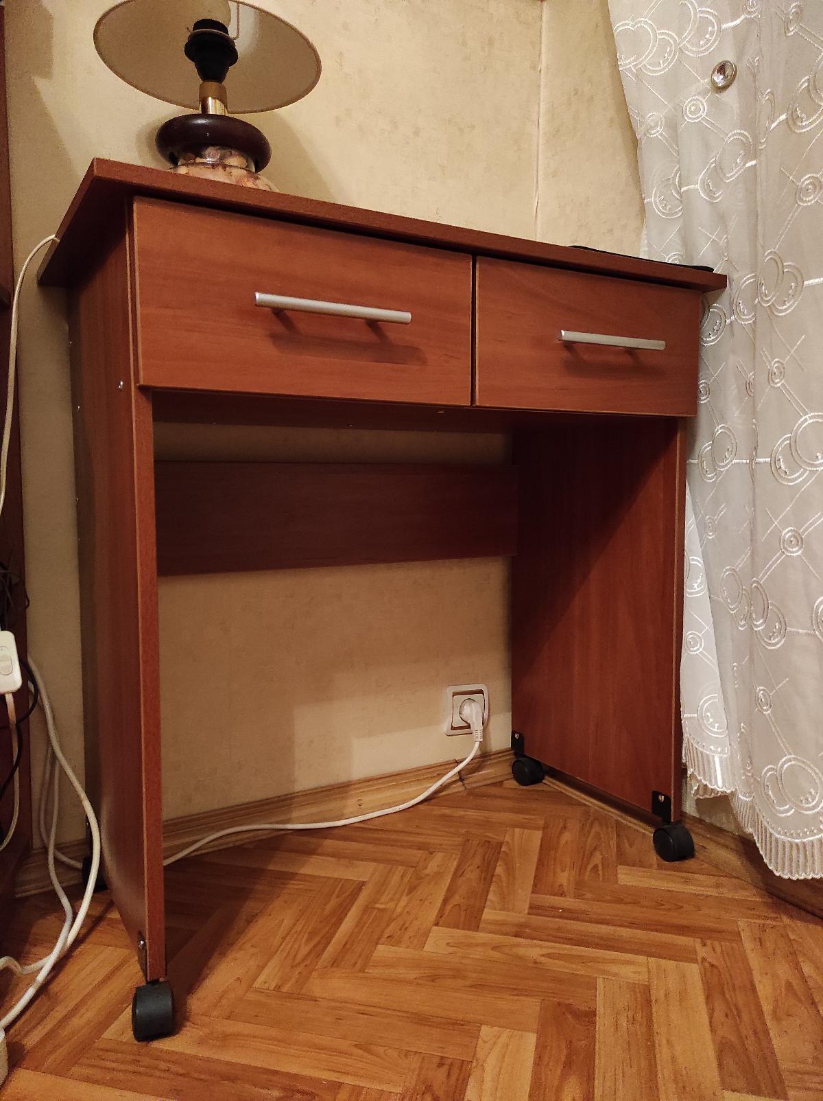 В прошлом году во время пандемии мне срочно понадобился письменный стол. Искала компактный, и чтобы по цвету подходил к основной мебели. Этот стол идеально подходил по размерам, но мне нужны были не полки, а ящики. Об этом я написала в комментариях к заказу. Со мной связался менеджер, с которым мы обговорили все нюансы. Стол получился маленький, компактный, с ящиками, как я хотела. Когда заказывала, очень смущали ролики. Но оказалось, что они очень удобны в эксплуатации.