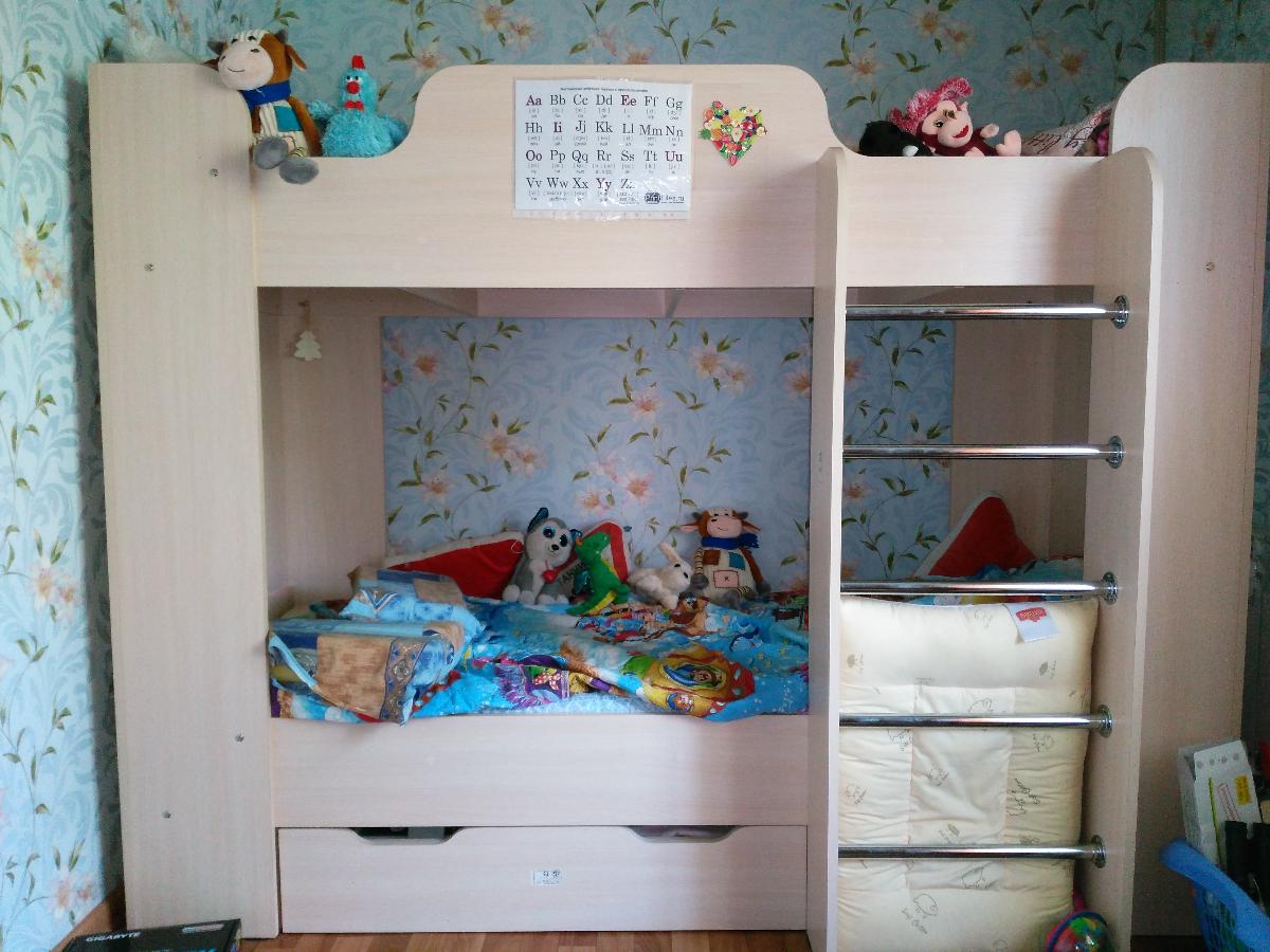 Две кровати практически полностью съедали все место в детской, поэтому было принято решение купить двухъярусную кровать. Когда привезли это тяжеленное чудище, мы слегка оробели, а инструкция по сборке внесла еще большую сумятицу. Но, как говорится глаза боятся, а руки делают. Кровать собирали вдвоем с мужем. Да было тяжеловато, но мы справились, и сейчас наши дети с удовольствием спят на этой кровати, а в детской комнате наконец-то появилось свободное место для веселых игр. Конструкция надежная и прочная, бортики на втором ярусе предохраняют ребенка от падения. Нижний ярус просто сказка, детки очень любят делать из него маленький домик и с удовольствием там играют. Наличие выдвижного ящика позволяет убирать постельное белье или игрушки, а ниша под лестницей стала излюбленным местом для игры в прятки. Желающим ее приобрести маленький совет: не поскупитесь и закажите нормальную окантовку, поскольку стандартная имеет довольно острые кромки и приводит к порезам. Производителя прошу учесть этот нюанс и делать кровать с безопасной окантовкой в базовом исполнении. Заказ №298953