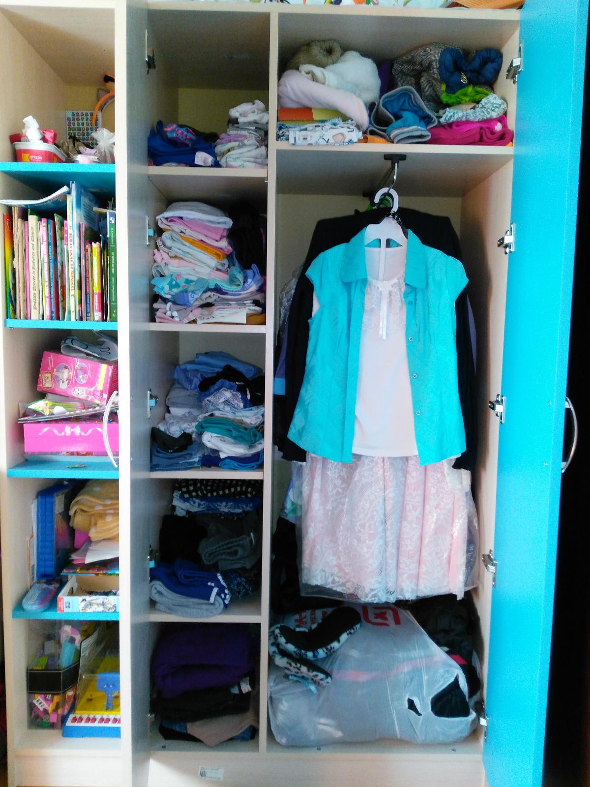 Очень симпатичный шкафчик в детскую комнату. Благодаря компактным размерам он легко уместился в маленьком пространстве, а расцветка вписалась в цветовую гамму помещения. Дети очень довольны. Но главное его достоинство – это конечно же многофункциональность. Наличие открытых полок позволяет ему быть книжным шкафом, а закрытый двустворчатой дверью внутренний отсек, разделен пополам и служит бельевым и платяным шкафом одновременно. Сборка простая, с этой задачей мы справились сами. Этот шкаф - идеальное решение для небольшой детской комнаты. Заказ№298953