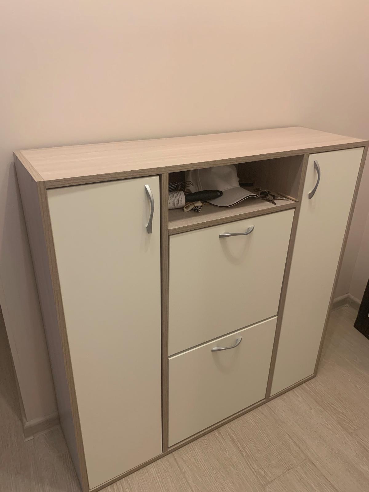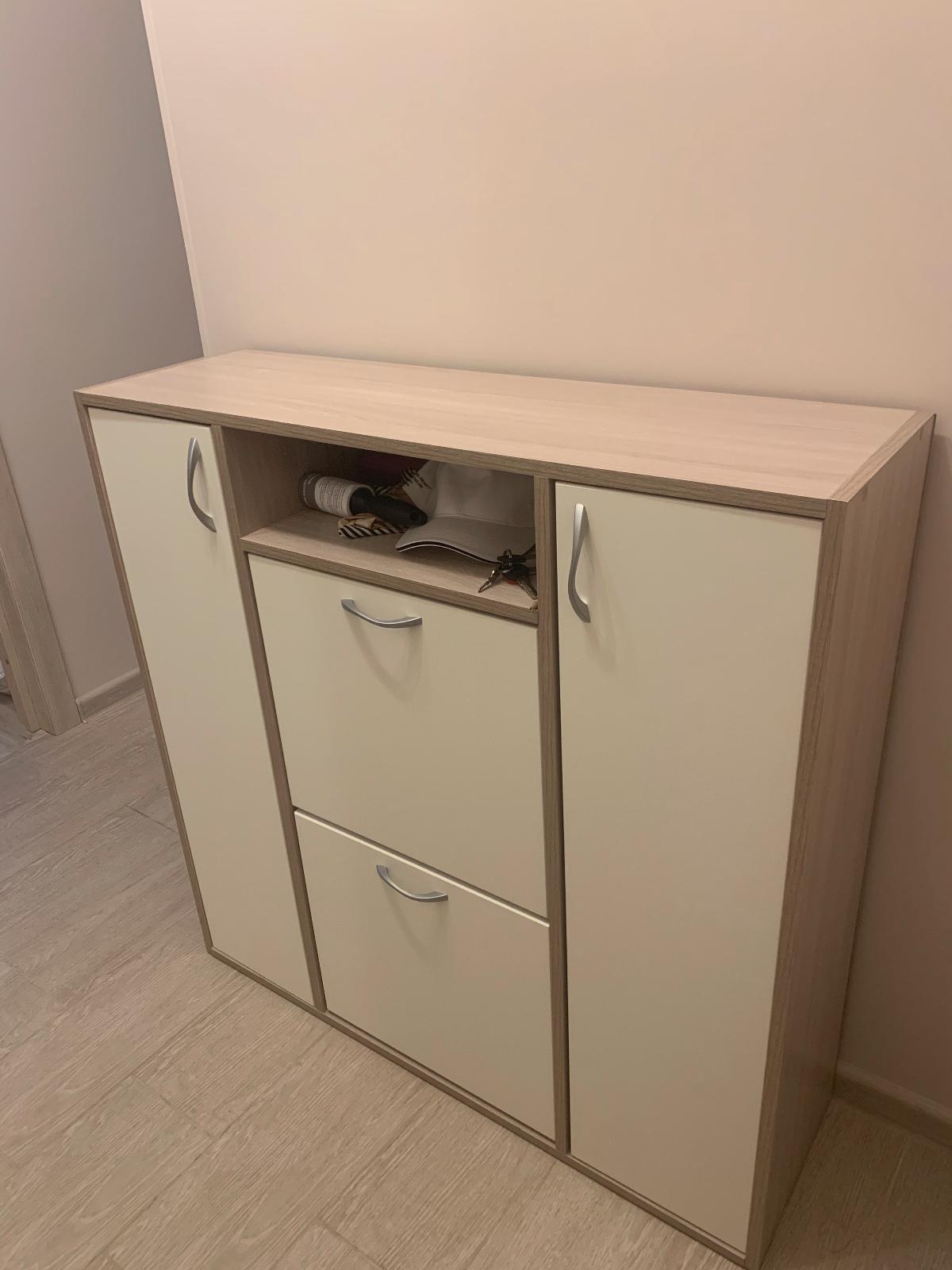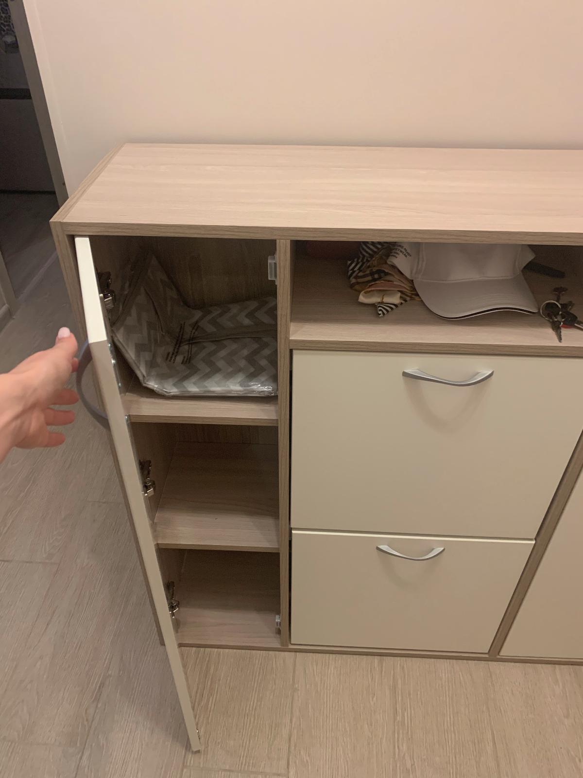 Симпатичная, удобная обувница идеально подошла в маленький коридор. Несомненный плюс – быстрое оформление заказа и онлайн конструктор на сайте. Качественно сделанная обувница приятного светлого цвета. Довольно вместительная хоть и узкая.