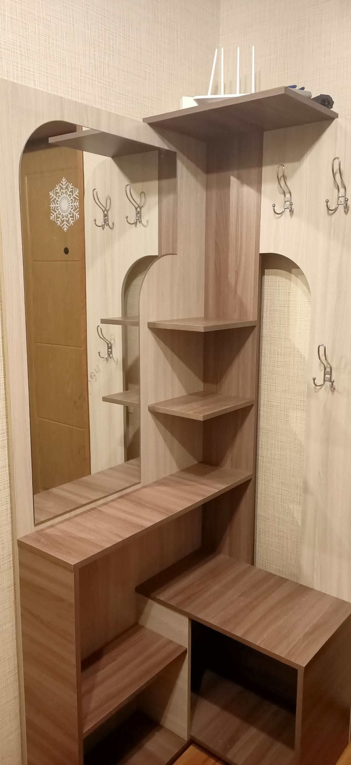 Отличная прихожая! Быстро оформили заказ именно по нужным мне размерам (600х1884х800). Оперативно все доставили. Собирается легко и быстро. Не стали устанавливать нижнюю дверцу - так более легче она смотрится. Качество ДСП хорошее, ни сколов, ни царапин, кромка вся целая. Отлично вписалась в маленький угол в прихожей. Именно то, что я долго искала!