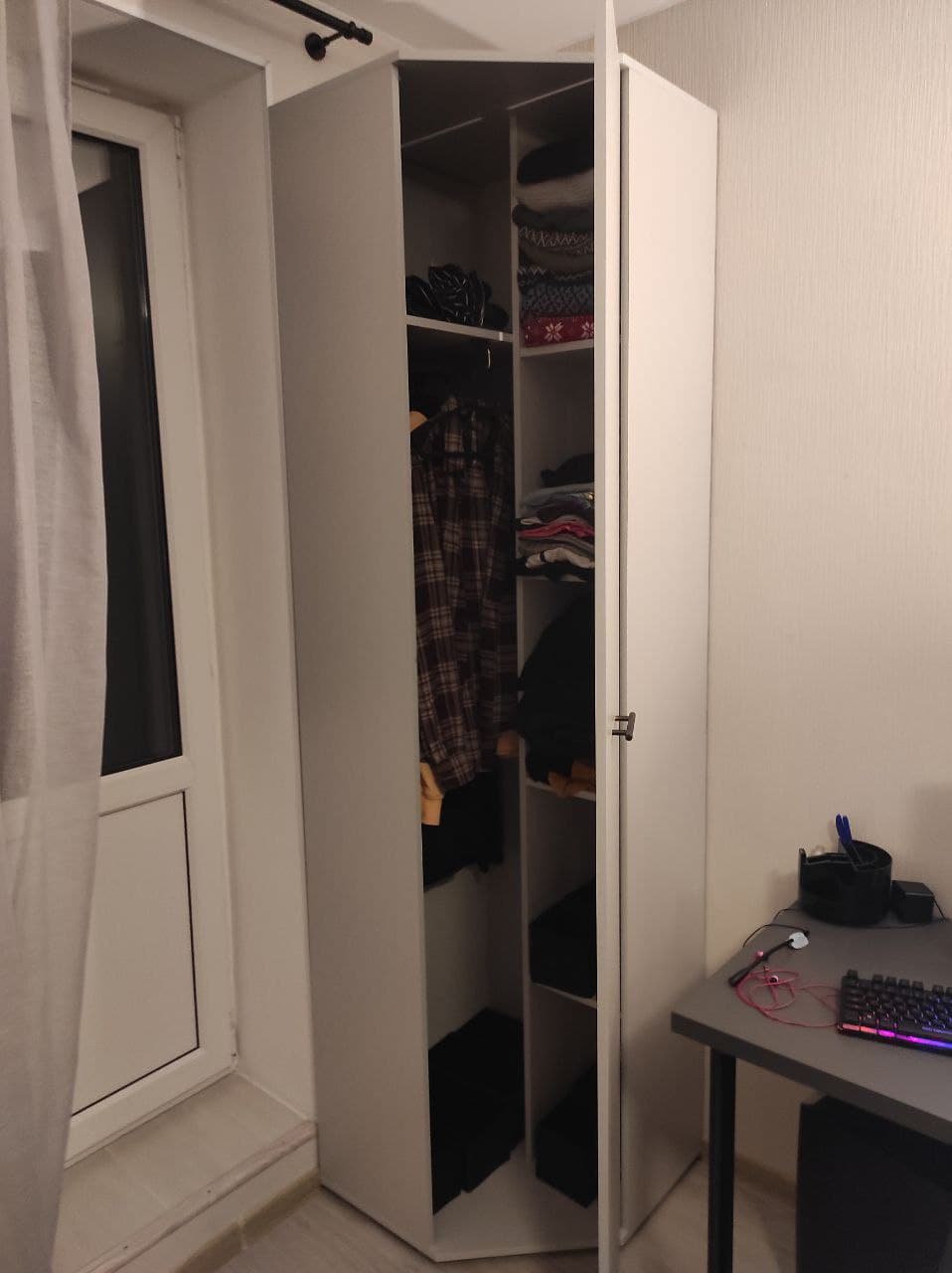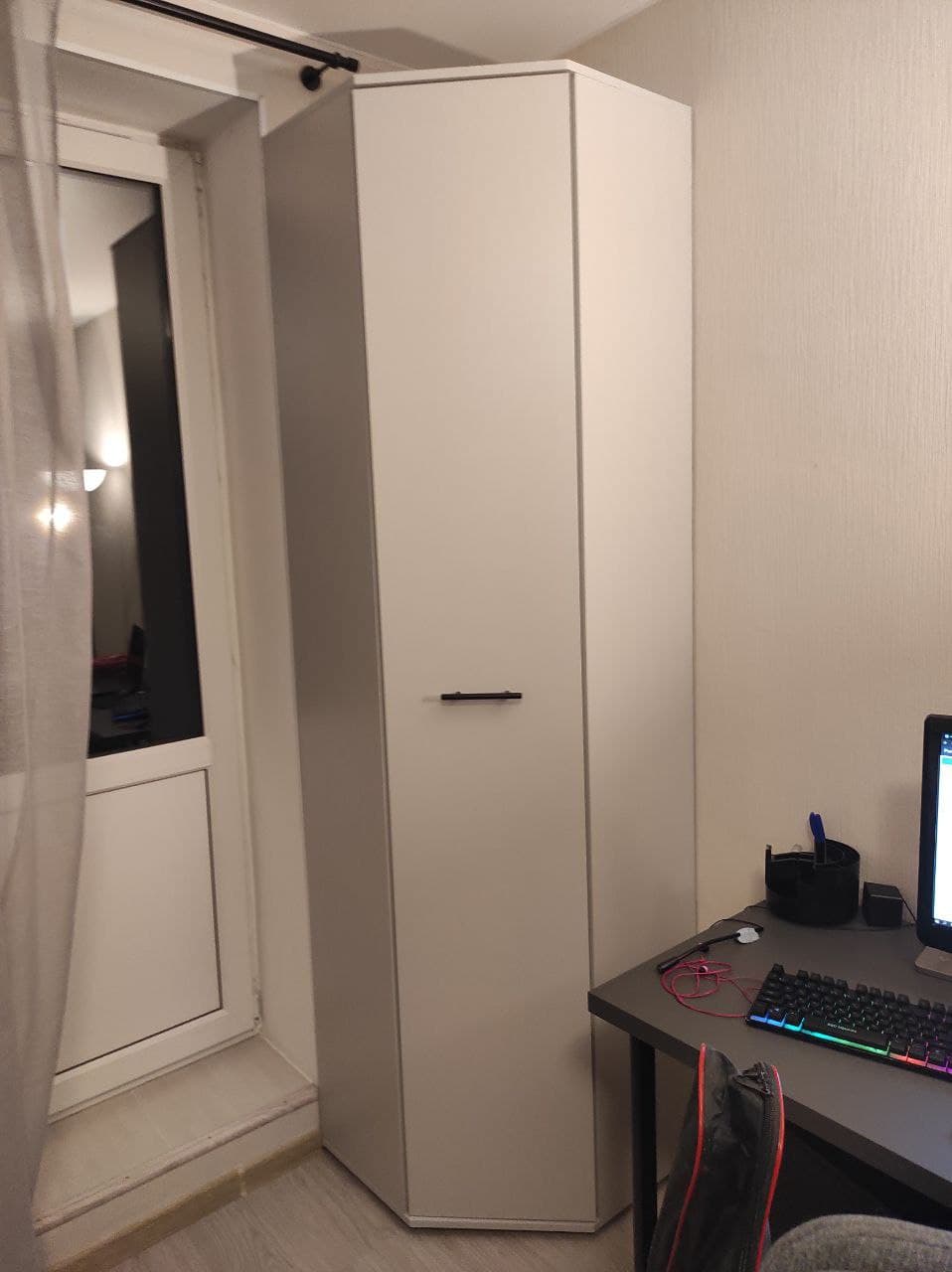 искали угловой шкаф по нужным размерам, встал хорошо в сборке не сложен и довольно вместительный мы довольны!