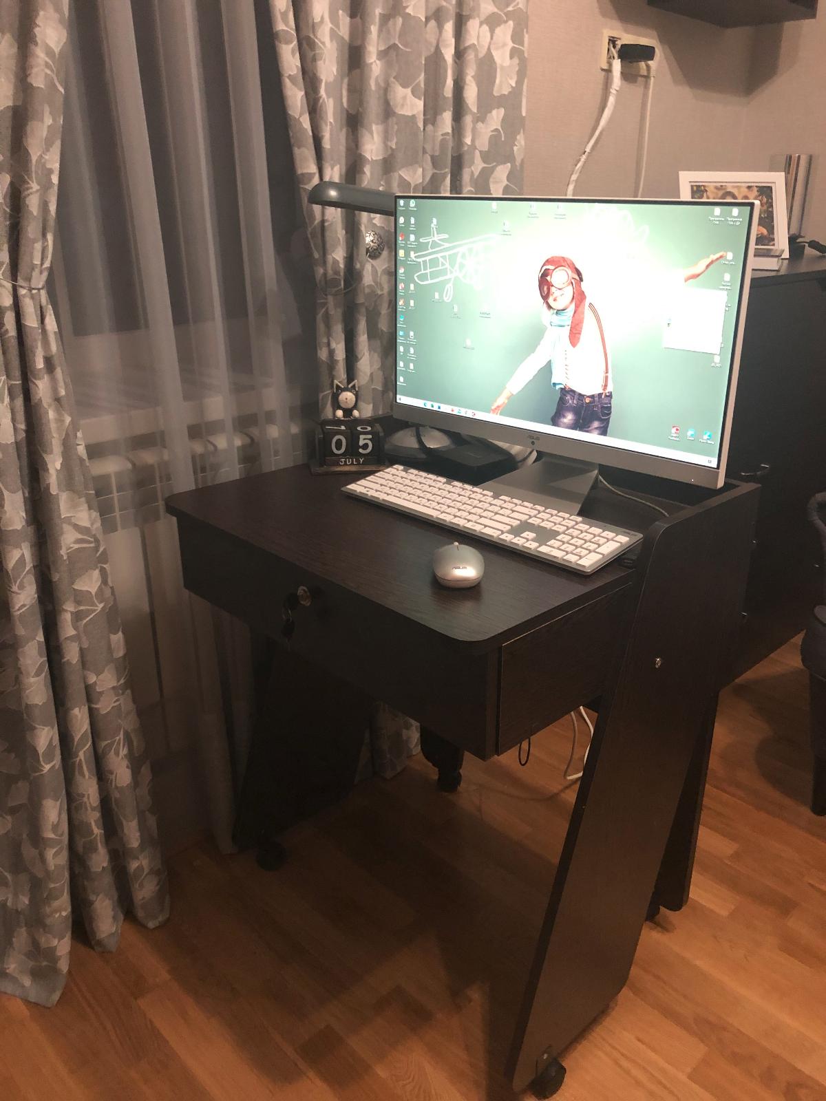 Столик под моноблок отличное дополнение к мебели в кабинет. Очень довольна приобретением. Лёгкая сборка, удобная конструкция.