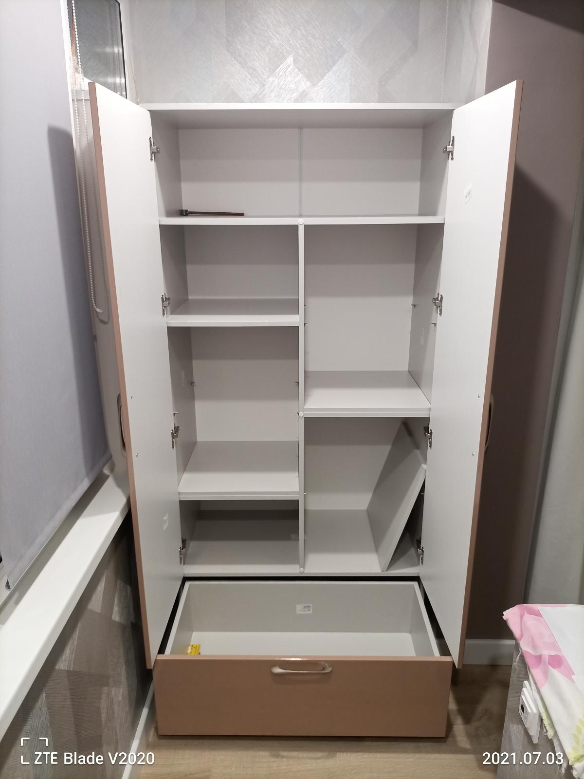 Подбирали шкаф, в стандартные размеры не укладывались. Здесь же можно подобрать по модели любые размеры вплоть до миллиметра. Решили заказать у БестМебельШоп. Удобно что можно конфигурировать шкаф прямо на сайте - заказали. Оперативно перезвонили, уточнили детали. Через несколько дней прислали эскиз на утверждение. При проверке понял что ошибка в эскизе - шкаф не той модели. Переговорил и эскиз прислали уже правильный. Очень удобно что конфигурацию полок можно сделать любую! Менеджеры готовы услышать и сделать то что вам нужно. Верхнюю полку попросил сделать без перегородки, а в итоге нам сделали ещё удобнее! Часть полок стационарные, а часть снимающиеся. Причем сделали в шахматном порядке что удобно если ставить нужно будет высокие вещи! Через неделю привезли. Доставка на брендированной машине магазина, что хорошо а не просто какая-то транспортная компания. Собирал сам. Крепежа хватило, даже остался и есть схема-эскиз по сборке, а детали промаркированы - не ошибётесь. Фасады просил не сверлить под ручки, ставил свои - без проблем сделали как я просил. Что хочется пожелать! На доставке поаккуратнее - получилось так что часть перегородок замятые с углов, но все со стороны задней стенки так что не критично. Фасады без дефектов само собой. И второе хотелось бы что бы менеджеры разбирались в фурнитуре и сразу отговаривали от той которая не подходит. Нижний ящик заказал с дном из ЛДСП. Фурнитура оказалась на него очень слабая - гнется и не держит его вес. Пришлось оперативно ехать в магазин и брать покрепче, взял на ящик 90 на 40 Боярд на 30 кг и совсем другое дело. Модель шкафа с его возможностью изменения конфигурации очень не плохая! Итого доволен, будет необходимость чего-то не стандартного заказывать буду тут. Заказ 417266 по эскизу 00000700534