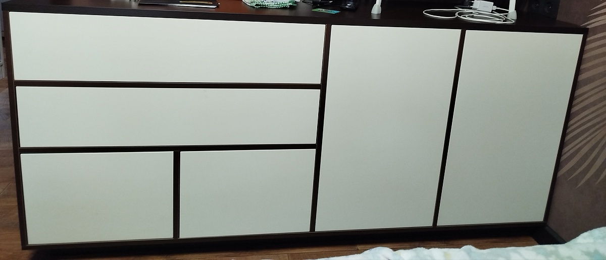 Долго выбирали комод, но нам всё не подходило то по размеру, то по цвету и вдруг случайно попался этот сайт - это просто магия! Можно самим подобрать цвет и отрегулировать размер. Огромный выбор дизайнов! Этот вариант нам пришёлся очень по душе. Пошаманили с конструкцией и цветом, и вуаля - комод готов. Он очень эргономичный и вместительный. Так же очень понравился квалифицированный и отзывчивый персонал, клиентоориентированные менеджеры, скорость и качество изготовления. Спасибо огромное! Единственное мы немного прогадали с цветом фасадов, но это в принципе всё поправимо.