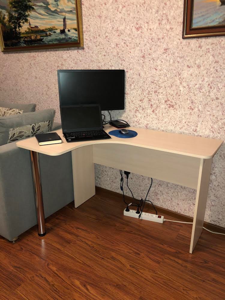 Стол компактный, при этом очень удобный и функциональный. Хорошо вписался в интерьер. Места хватает для всего, что нужно для удаленной работы. Доставка быстрая. Рекомендую