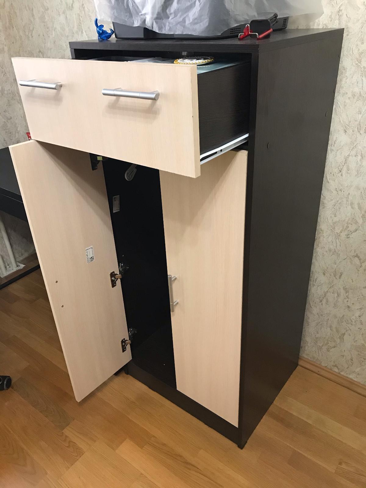 Использовали данный комод, как дополнительную часть к компьютерному столу. А именно, для установки принтера. Очень удобно. Давно искали такой предмет мебели, не слишком низкий, чтоб непременно был и с ящиками и с открытой полочкой. Сборка простая. Ящики удобные. И ручки круглые, искали именно с такими. Курьер привез все вовремя, как и просили, после рабочего дня.