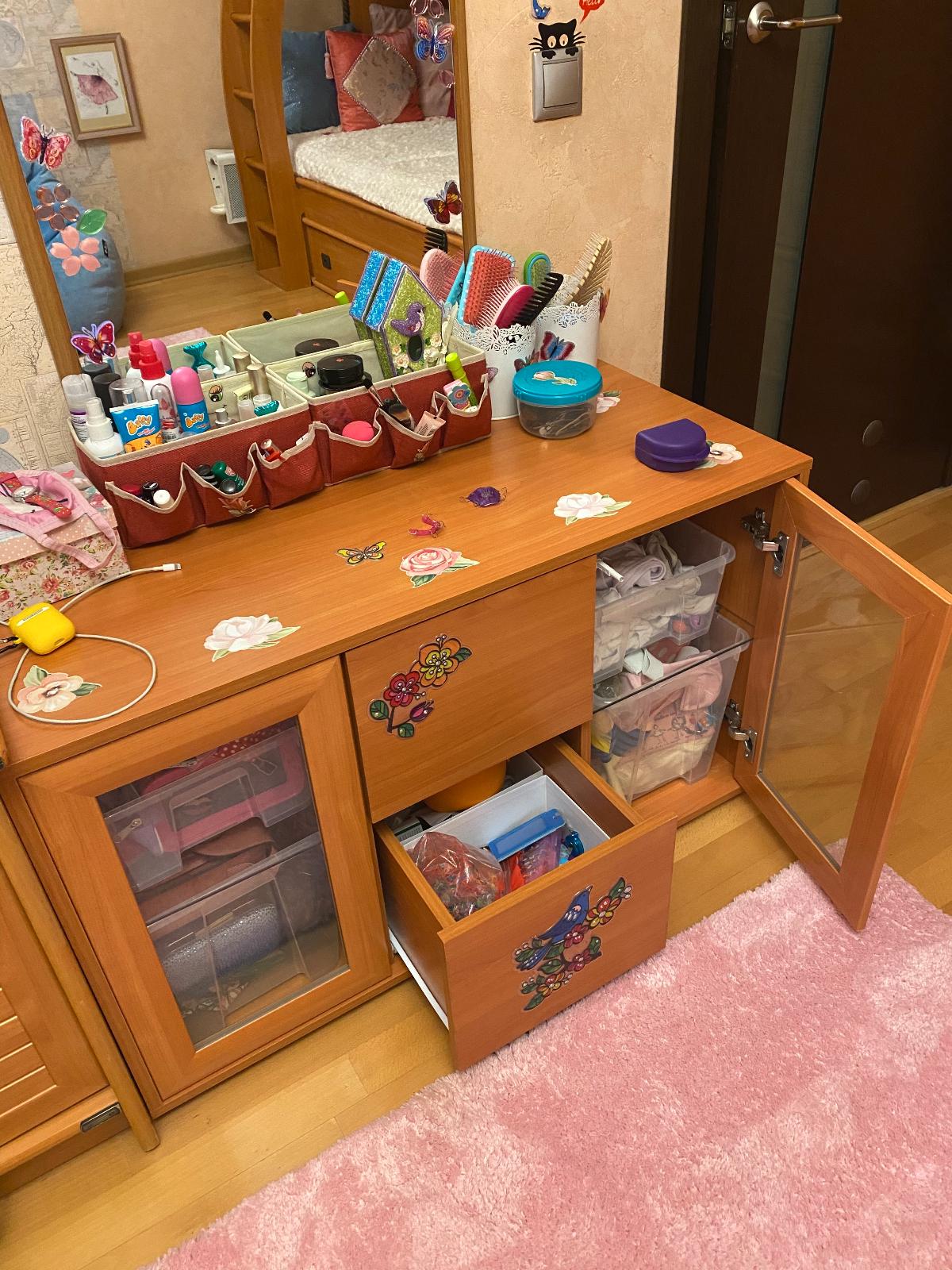 Заказала тумбу Микки ПМ дочери в комнату в качестве трюмо под зеркало. Подбирала под мебельный гарнитур, поэтому в заказе изменила цвет дерева и размеры. Такая возможность очень порадовала. Заказ был выполнен в срок, качество изделия отличное, цена вполне доступная. Сборщик, рекомендованный сайтом, собрал все быстро и аккуратно. Смотрится очень аккуратно, тумба вместительная. Пользуемся с удовольствием. Спасибо магазину BestMebelShop.ru