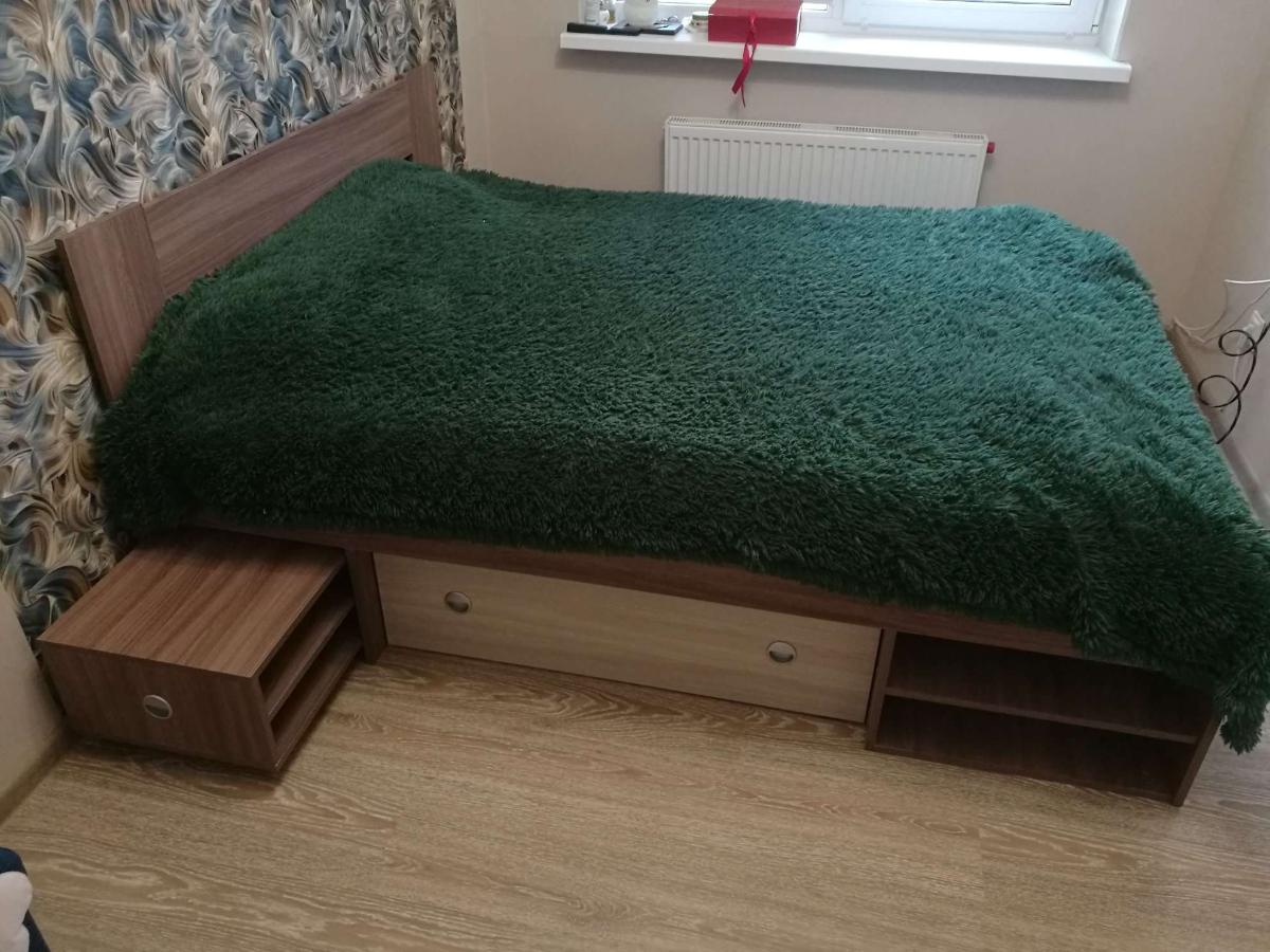Кровать отличная! Удобна и функциональная. Очень долго искал кровать, чтобы по размерам спального места была 150Х190 и при этом функциональная. На самом деле на просторах интернета не много вариантов, а тут, случайно наткнулся на эту кровать, посмотрел, что можно сделать в любом цвете и в любых размерах, так ещё куча ящиков (2 ящика по бокам и один в ногах) и тумбочки с двух сторон.В общем, она у меня и она меня радует.Из предложений, сделайте мягкую или скошенную кромку по периметру кровати.
