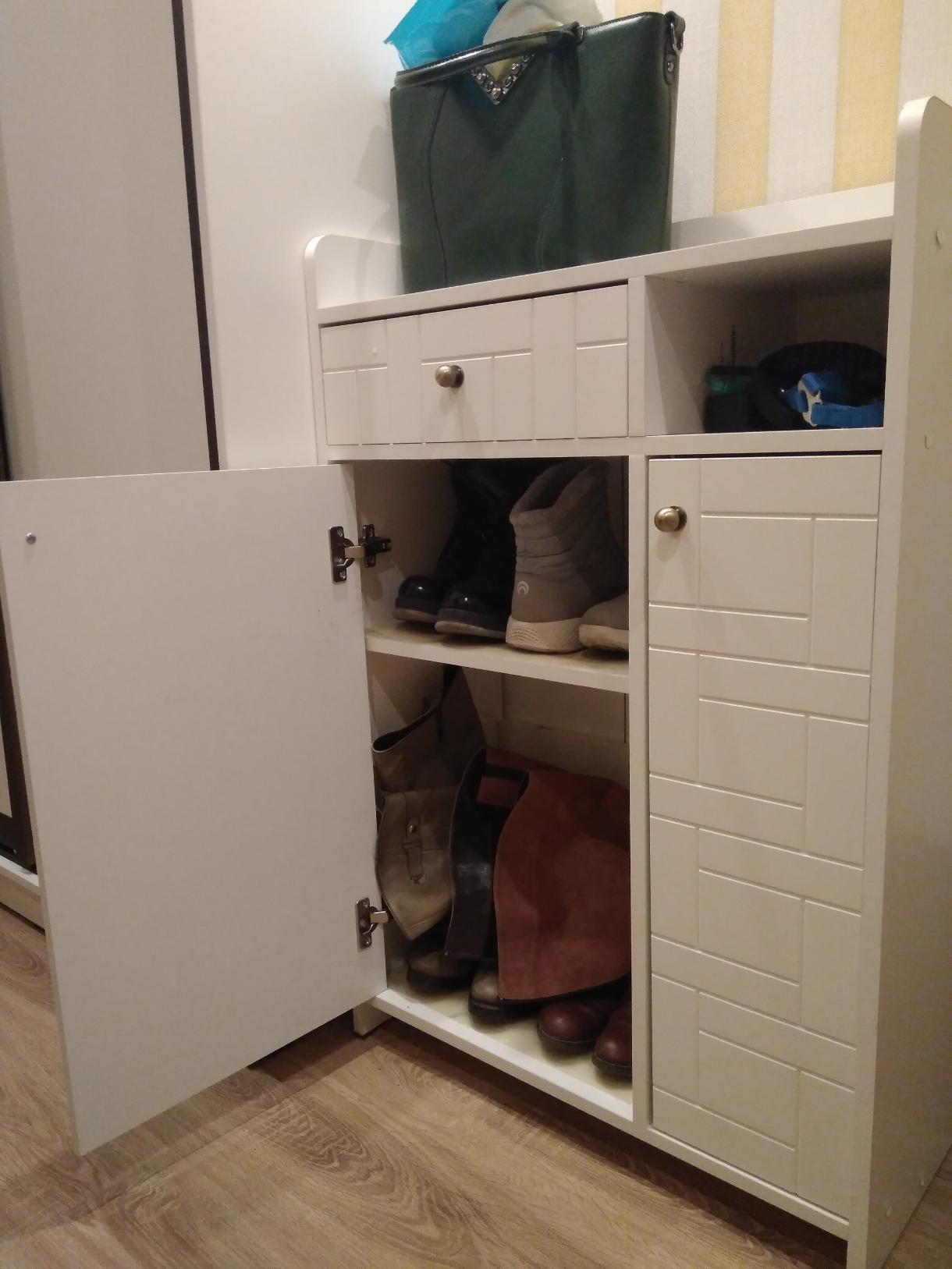 Стильная тумба. Взяла белую, отлично вписалась в коридор. Функциональная, но для большеразмерной обуви не подойдёт. Полки съёмные, можно убирать и ставить сапоги. Из минусов Отсутствие инструкции по сборке. Собирала сама.в целом, довольна покупкой.335594