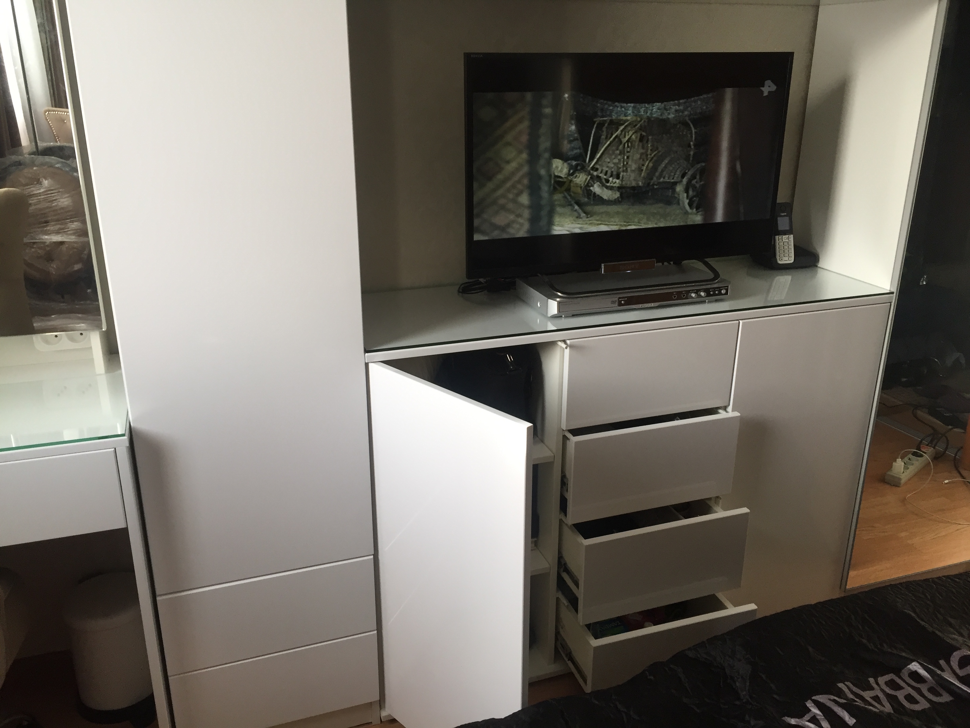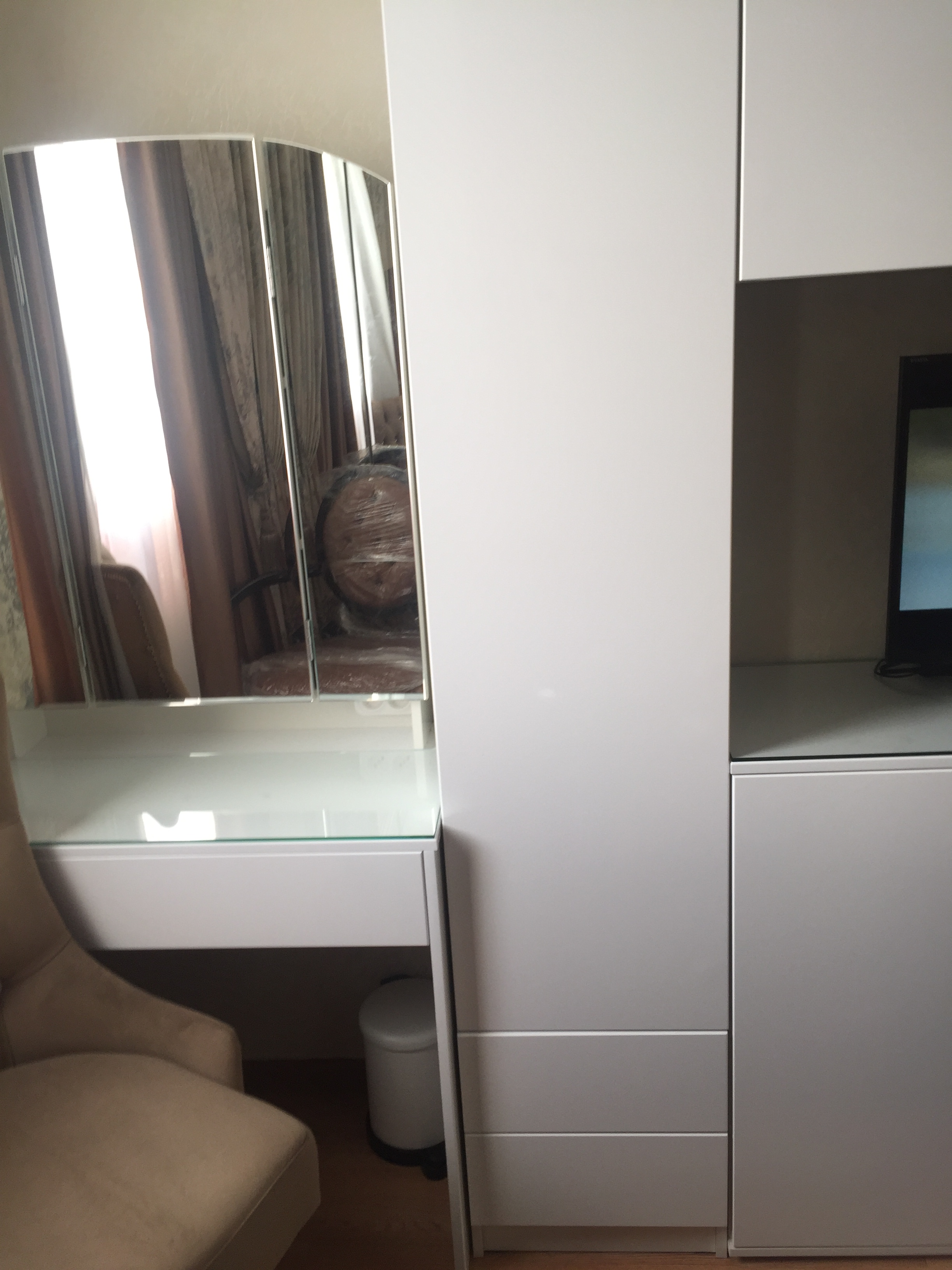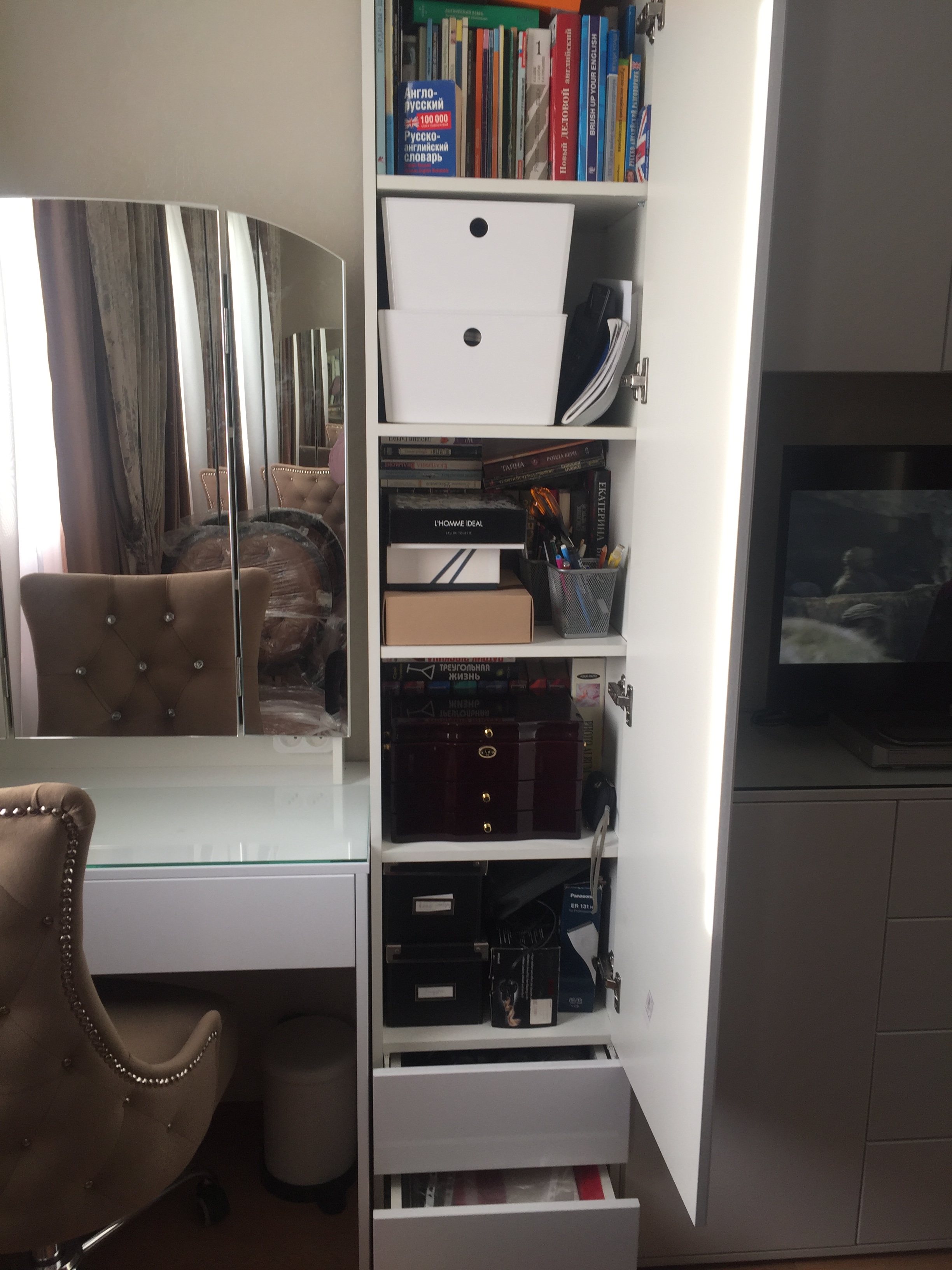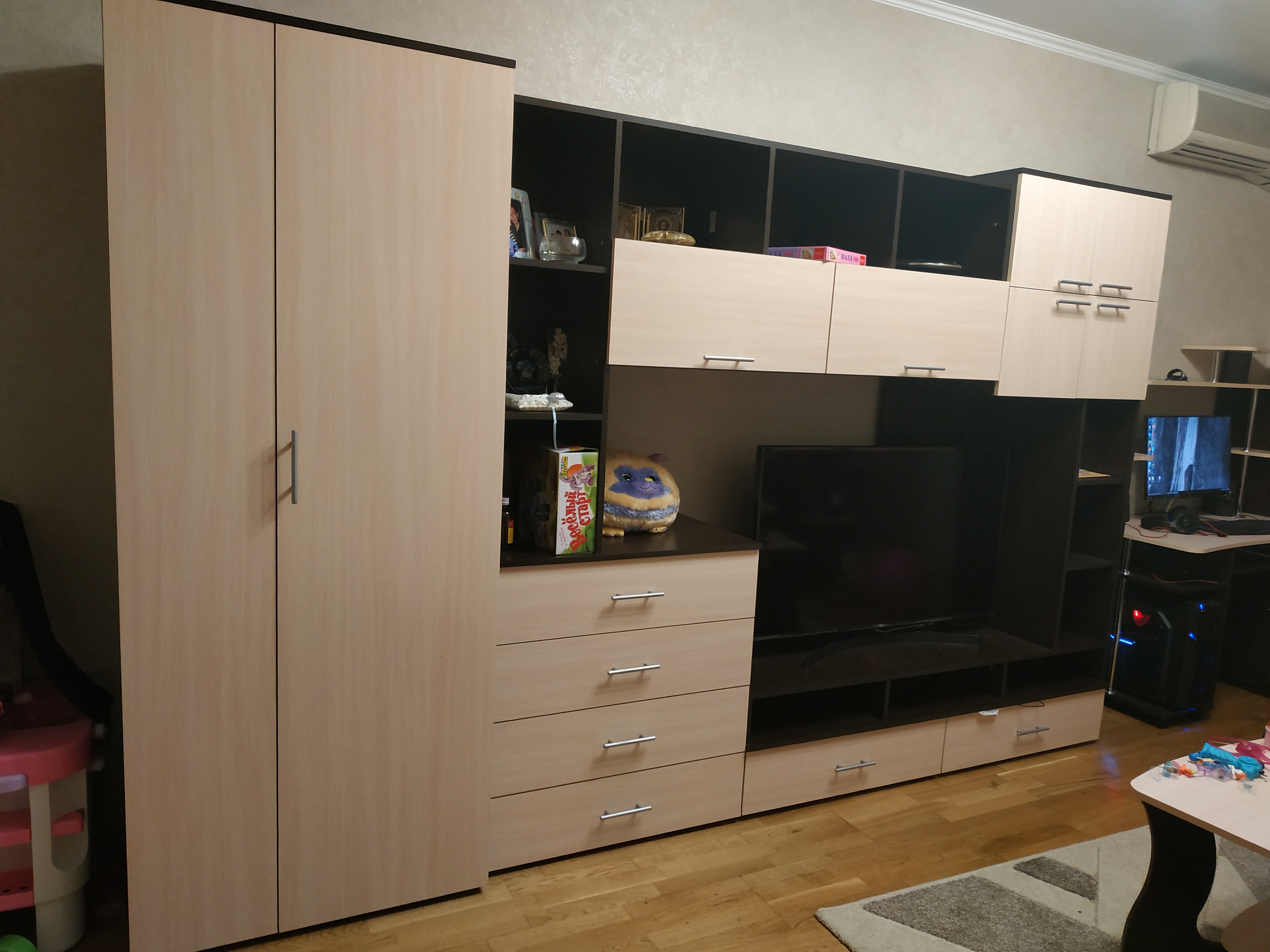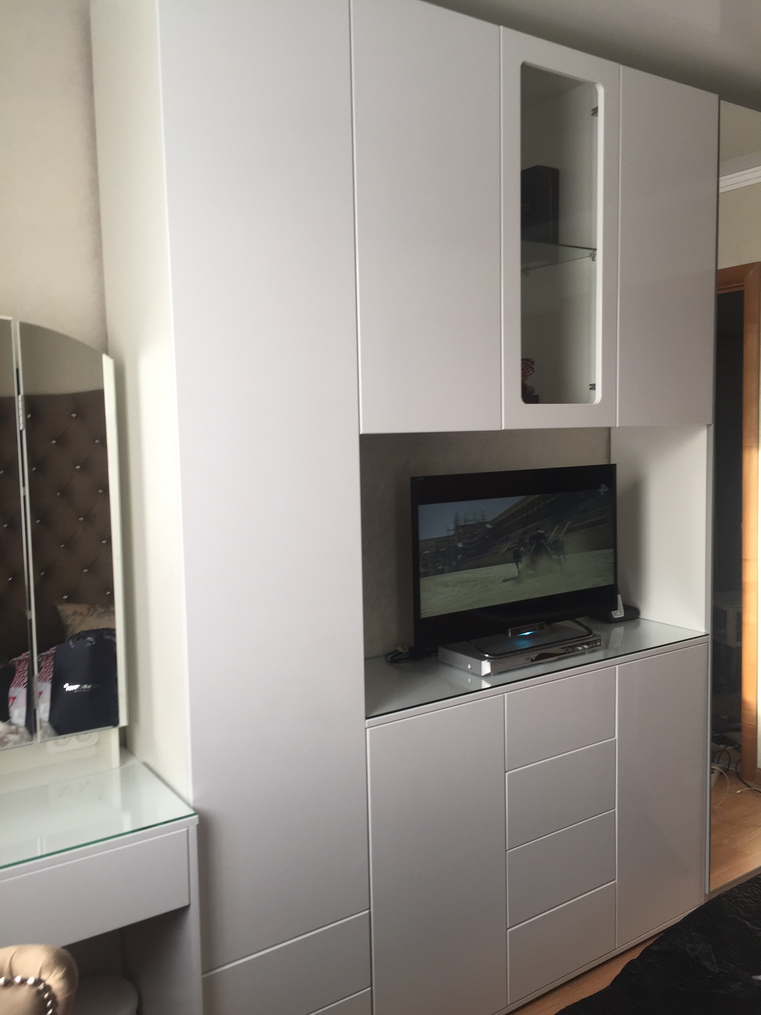 Зодиак 1.2+А Шкаф распашной BMS заказан как один из элементов стенки в спальню. Используется как колонка. Спальня очень маленькая всего 9 кв. метров и встал вопрос об узкой стенке шириной 38 см. Нестандартный размер... Но какое счастье, что есть такой замечательный магазин Bestmebelshop, который помог подогнать все модули под мой зеркальный бельевой шкаф такой же ширины 38 см. Все встало идеально в одну линию и по высоте тоже. Заказала шкаф без ручек, нижние ящики с системой push to open, дверца цельная на плавно закрывающихся петлях. Фасады белые, глянцевые. Вся стенка смотрится гармонично. Шкаф очень вместительный. Не нарадуюсь!